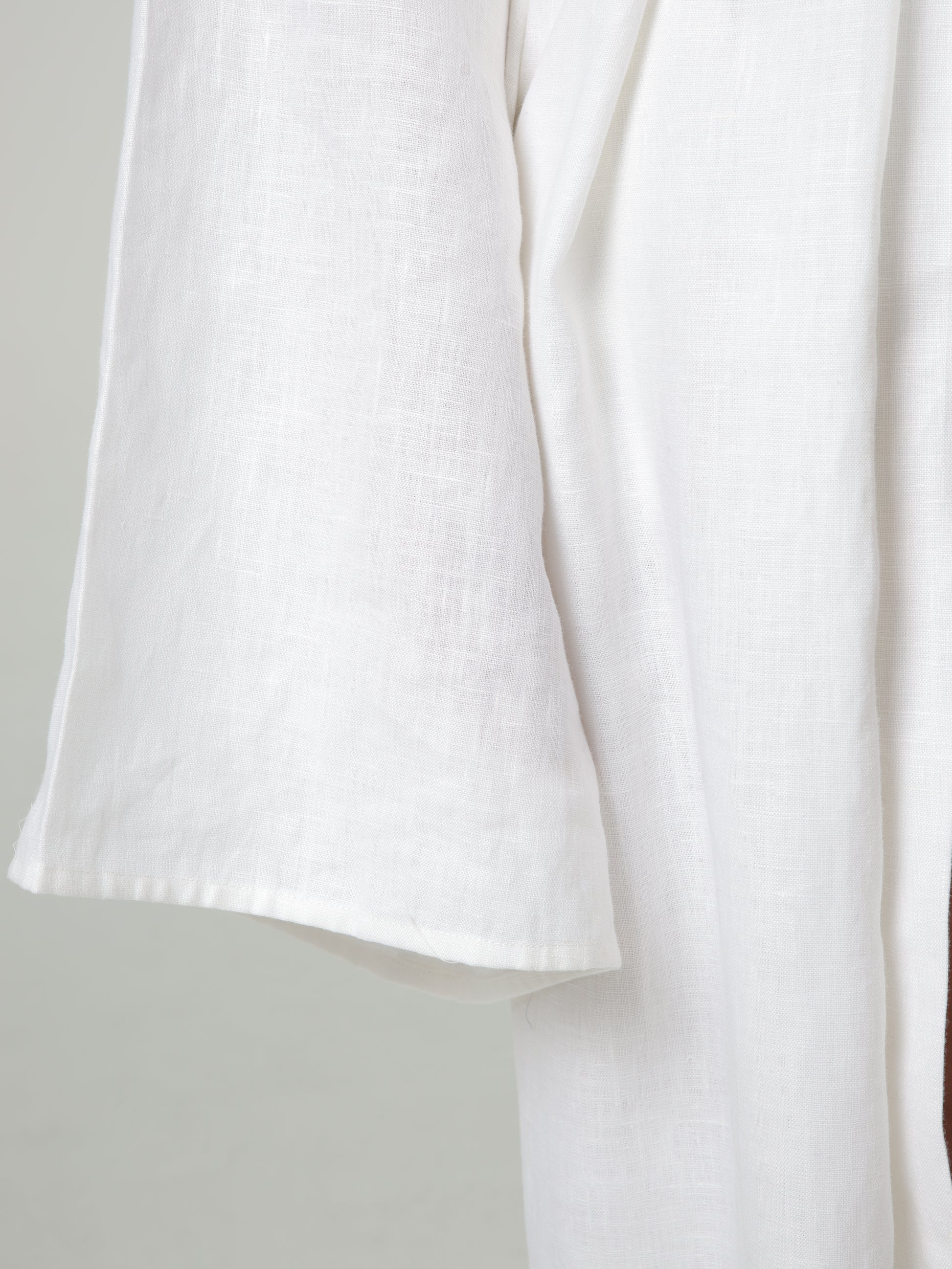 Cut from 100% pure linen, this one-shoulder maxi dress features a kimono sleeve and a high hip split, revealing just the right amount of leg as you move. Fully lined for a sleek, non-transparent fit, this piece combines sculptural drape with breathable ease, perfect for warm evenings or elevated daytime moments.